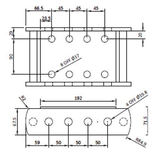 8 x M16 fixing holes, 90mm centres, 45mm height intervals
