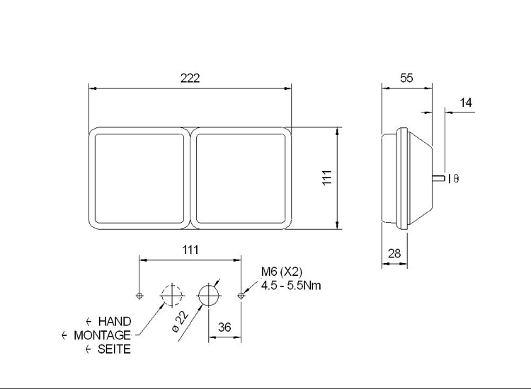 Rubbolite (Truck-Lite) M312 3 Function 12V Modular Trailer Combination Lamp